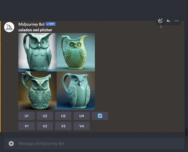 当 Midjourney Bot 图片生成完成后,图片下方都会有一排 U 按钮,这些按钮做的事情就是这个 Uplight 参数做的事情,一般人都会通过点击按钮来使用,比较少在 prompt 里添加。