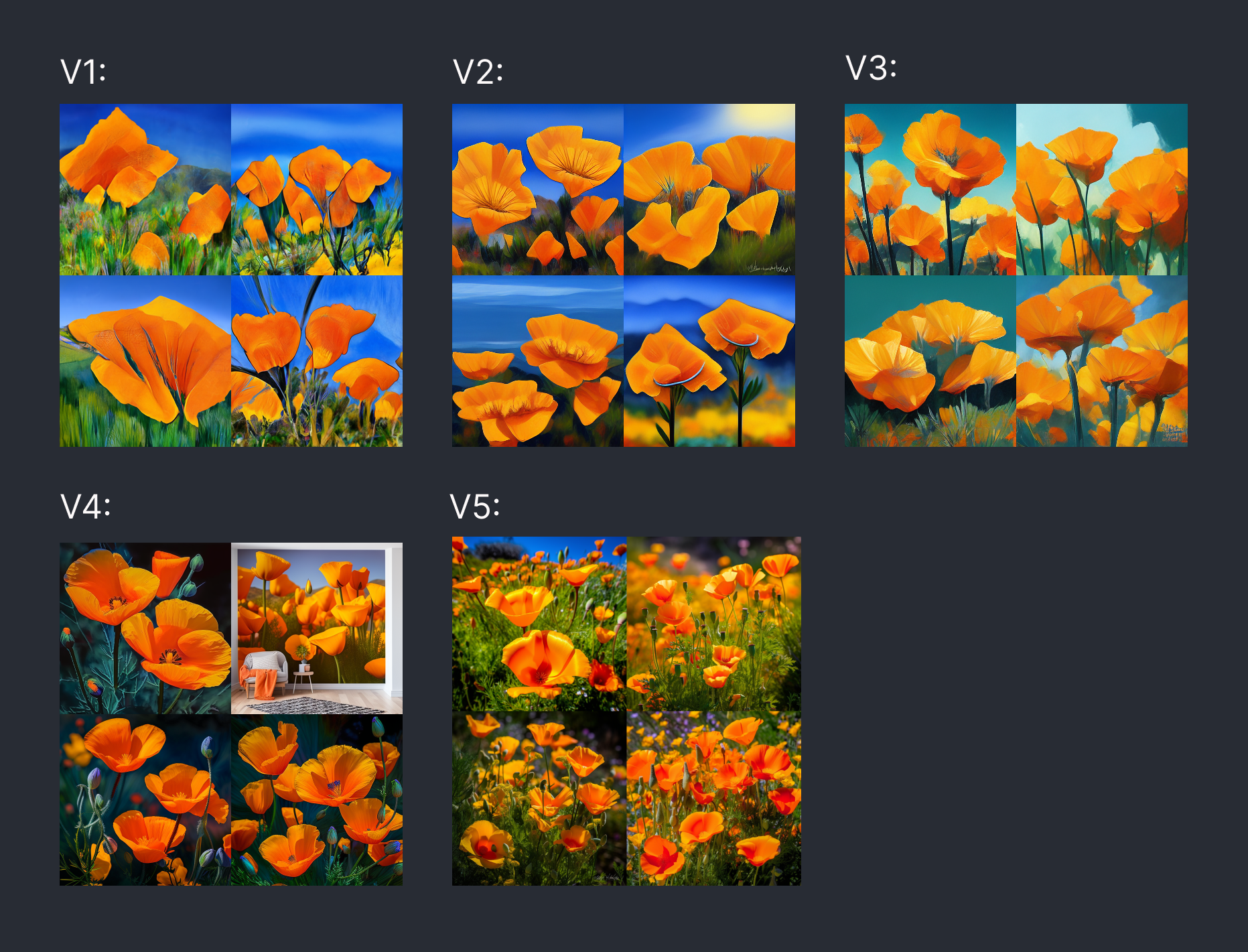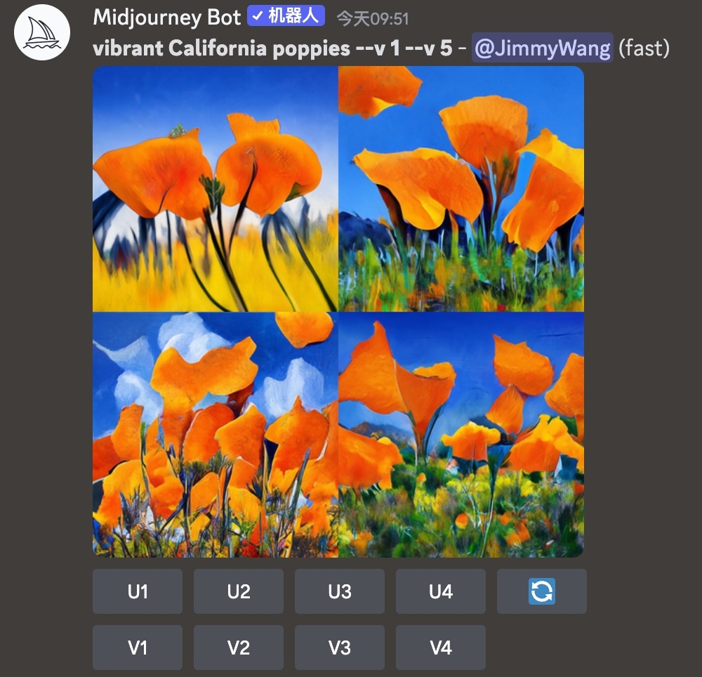 --v <1, 2, 3, 4, or 5> 使用不同版本的 Midjourney 模型