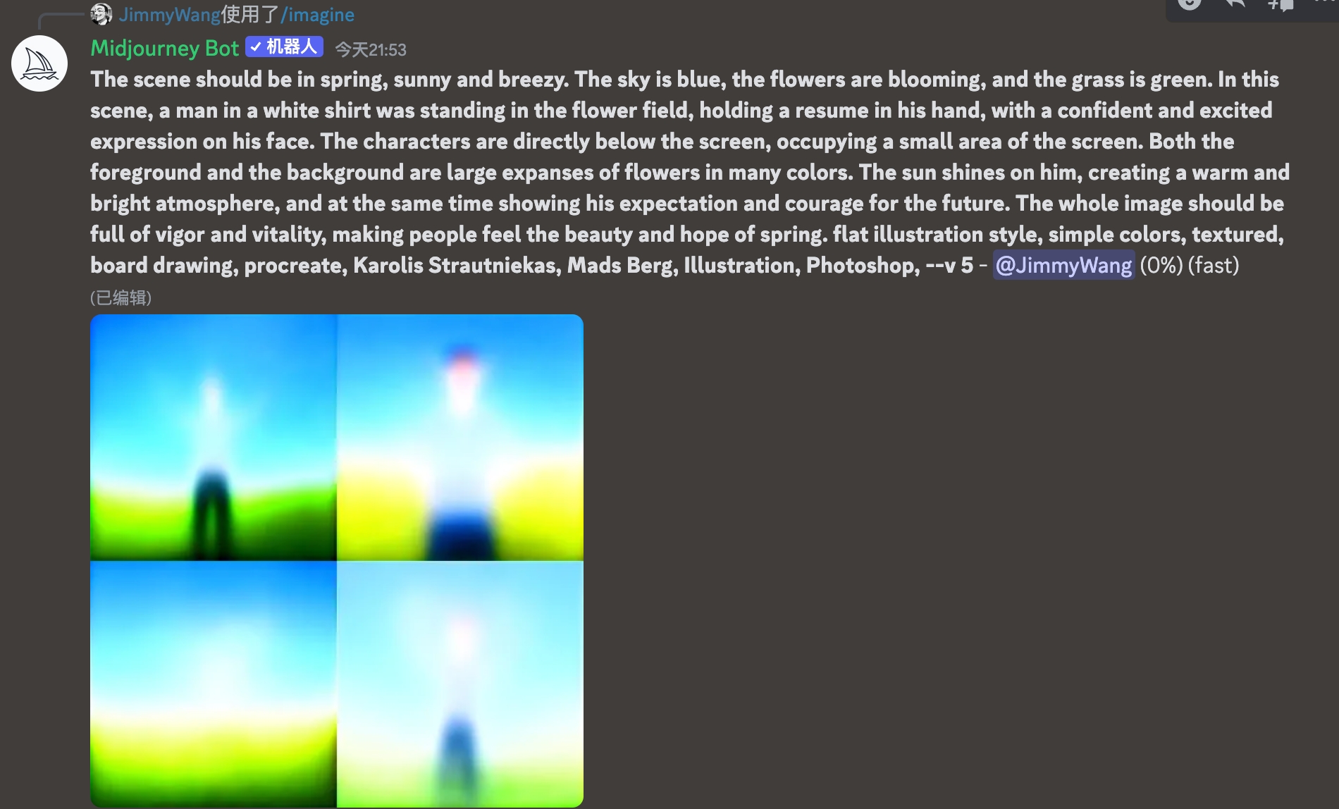 因为在公共频道上使用,你发的图片会被频道里的人看到,所以如果你不想让自己的图被大量的人看到,可以使用 Midjourney Bot 的方式。