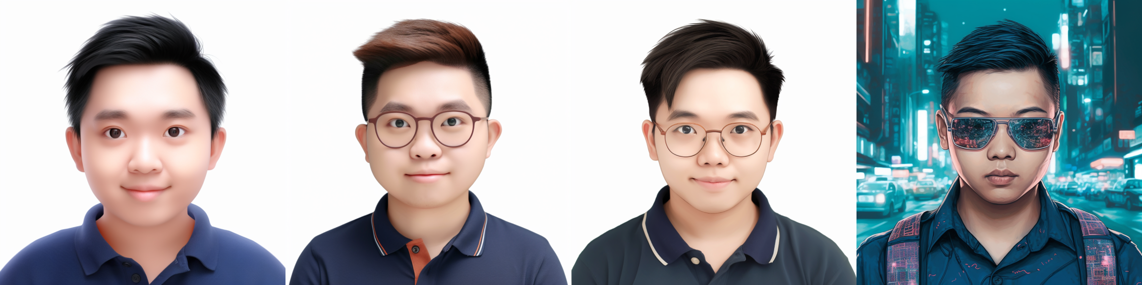 上面这几个头像 prompt 最后生成的头像是这样的,坦率地说,我已经尽力了,我的个人特征太少了,人也不帅,生成的图片,都有种东南亚人那味,感觉 Midjourney 对亚洲人的理解还不是很行 😂