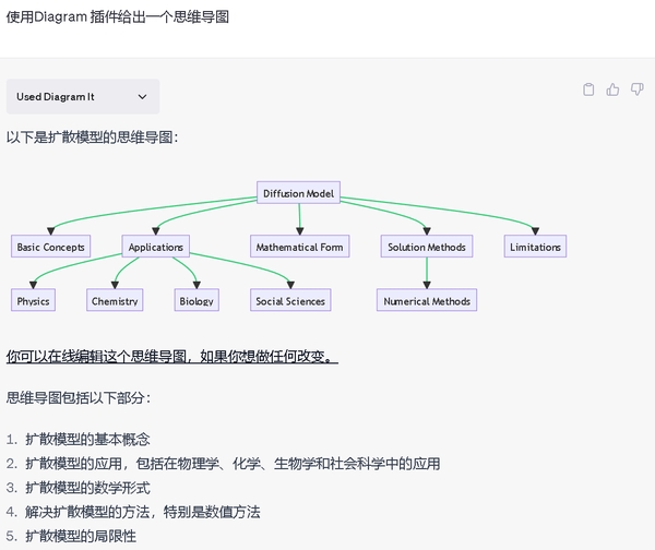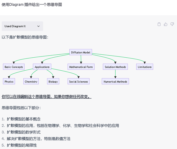 在本节中,我们联合使用多个插件,用WebPilot对VAE观点下的扩散模型这篇文章进行总结,用 Show Me绘制草图,并用Wolfram可视化扩散过程。