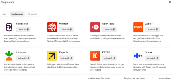 很幸运接到OpenAI的早期插件开发者的邀请,我们探索了整个插件开发的流程,并全面评测了现有的70款ChatGPT插件,为每个插件提供了一句话简介和使用样例分析。